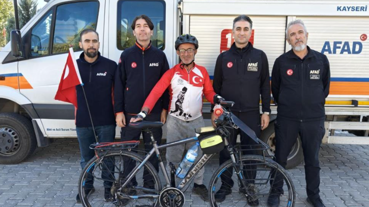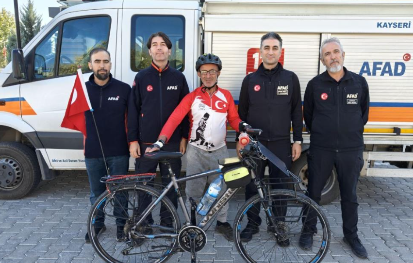 İzmir’de yaşayan 47 yaşındaki bisikletli gezgin Orhan Kotluk, ‘Asrın Felaketi’ olarak nitelendirilen 6 Şubat depremlerine dikkat çekmek amacıyla İzmir’den Kahramanmaraş’a doğru yola çıktı. Yaklaşık 20 yıldır Türkiye’yi bisikletiyle gezen Kotluk, yolculuğunda bin 350 kilometrelik bir parkuru kat edecek. Farkındalık oluşturmak için yola çıkan Kotluk, duraklarından biri olan Kayseri’ye ulaşarak AFAD İl Müdürlüğü’nü ziyaret etti. AFAD İl Müdürü Rıfat Genç ve Birlik Müdürü Hasan Say ile buluşarak yolculuğu hakkında bilgiler aktardı. Kayseri’de yolculuğuna mola veren Kotluk, daha sonra Kahramanmaraş’a gitmek üzere yeniden yola koyuldu.