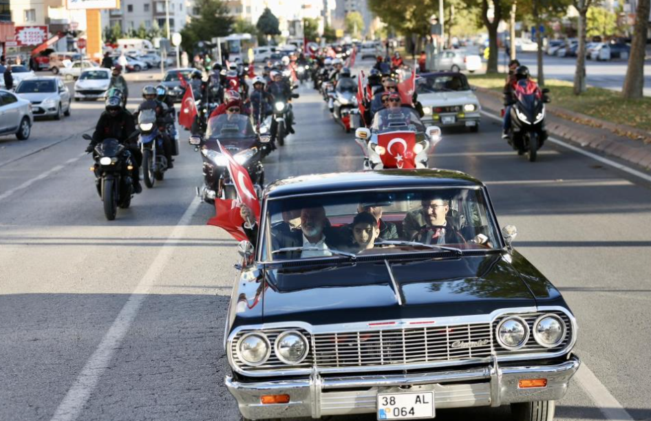 Kocasinan Belediyesi'nin ev sahipliğinde gerçekleştirilen etkinliğe Kayseri Motosiklet Sporları Kulübü, Erciyes Klasik Otomobilciler Derneği, Vosvos Kayseri Grubu, Kayseri TOGG Grubu, Şahin Off-Road Ekibi, Alfa Kayseri Grubu ile Harp Malulü, Gaziler, Şehit Dul ve Yetimleri Derneği katkı sağladı. Sümer Mahallesi'ndeki Amatör Spor Kulüpleri Federasyonu otopark alanında toplanan şehit ve gazi çocukları, klasik araçları ve motosikletleri yakından inceledi. Klasik araca binen Başkan Çolakbayrakdar, "Ay Yıldız Turu"nda vatandaşları selamladı. Vatandaşların yoğun sevgi gösterisiyle karşılaşan Başkan Çolakbayrakdar, tüm vatandaşların Cumhuriyet Bayramı'nı kutladı.