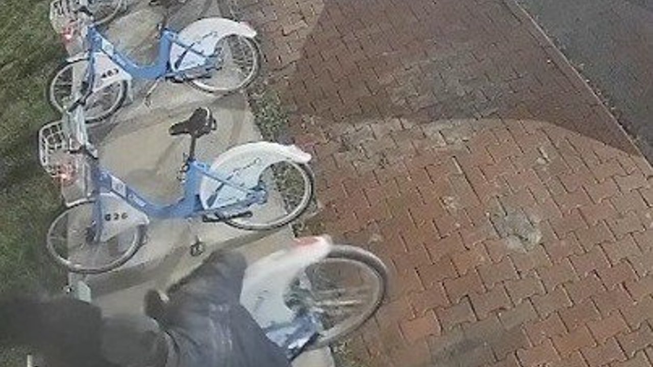 Kayseri'de kentin farklı noktalarında bulunan istasyonlardaki bisikletlere zarar veren şahıslar kameraya yansıdı.