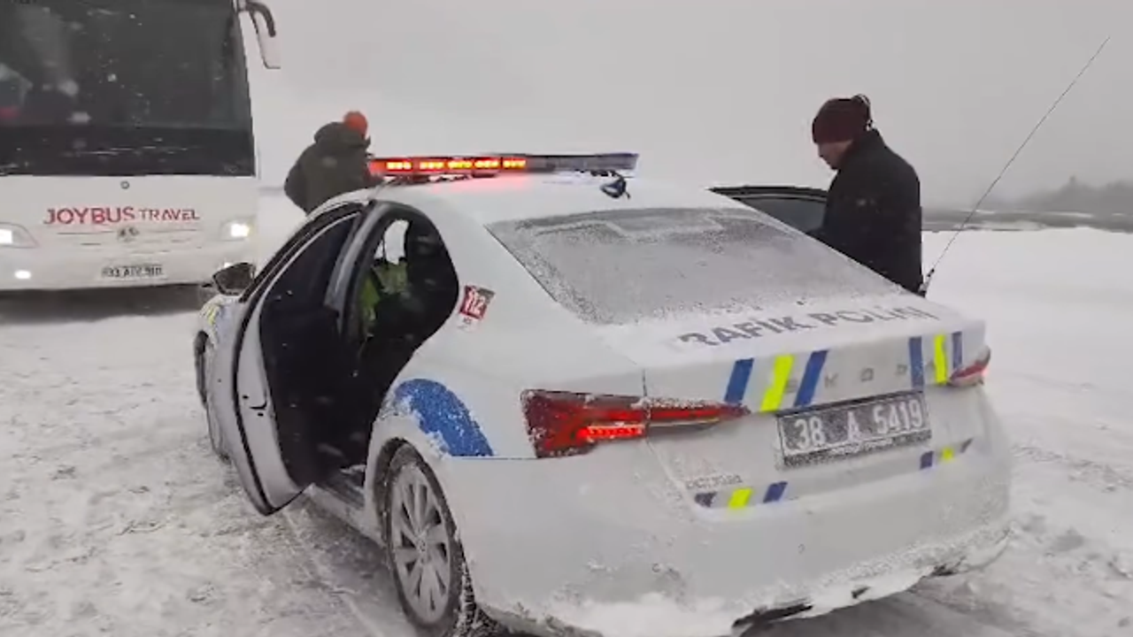 Kayseri Trafik Denetleme Şube Müdürlüğü ekipleri, yoğun tipi nedeniyle Erciyes yolu üzerinde hareket kabiliyetini kaybeden bir tur otobüsüne müdahale etti. Otobüste bulunan 44 vatandaş, donma tehlikesiyle karşı karşıya kaldı.