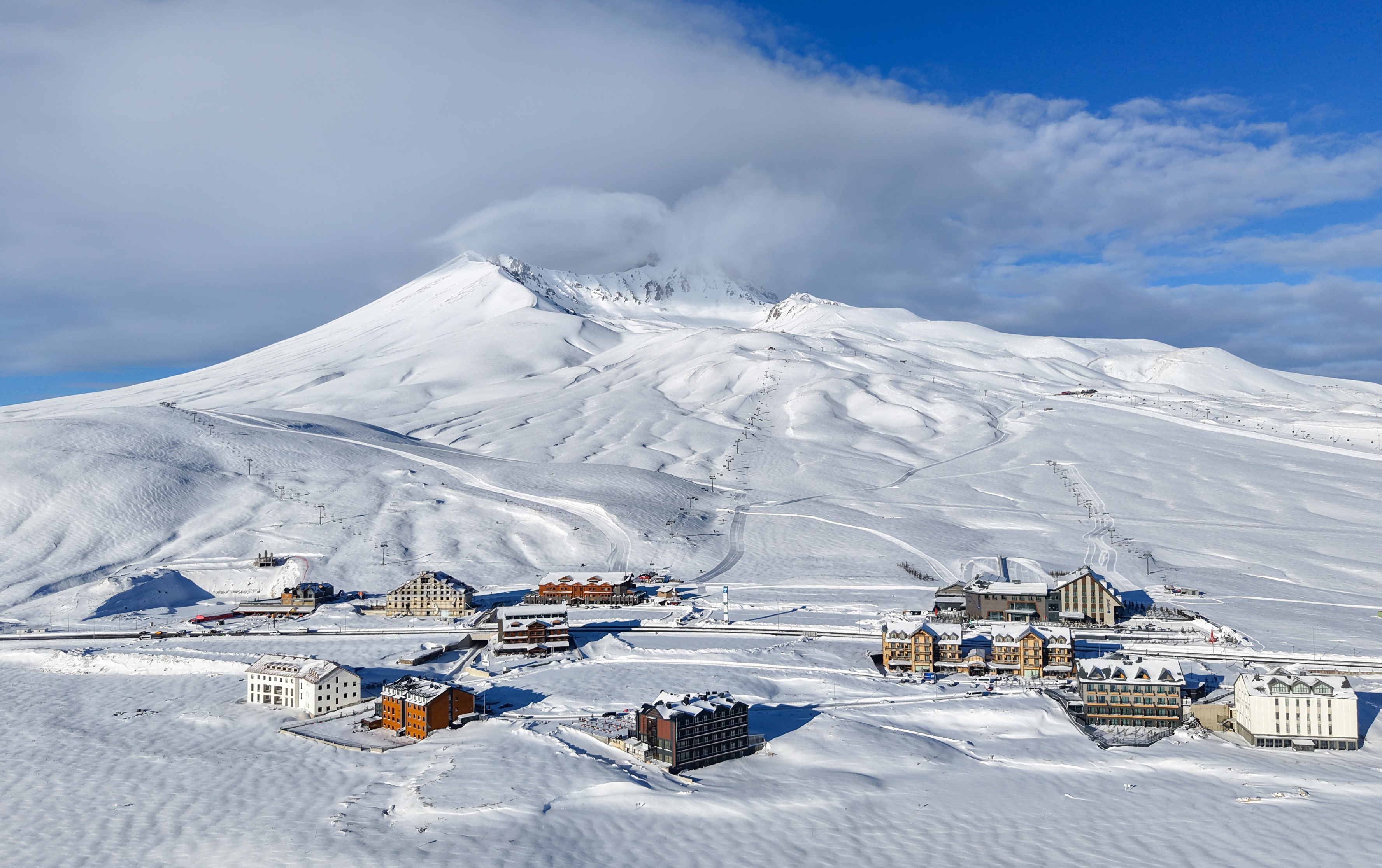 Erciyes'e giden yollar, pistler ve dağ havadan dron ile görüntülendi.