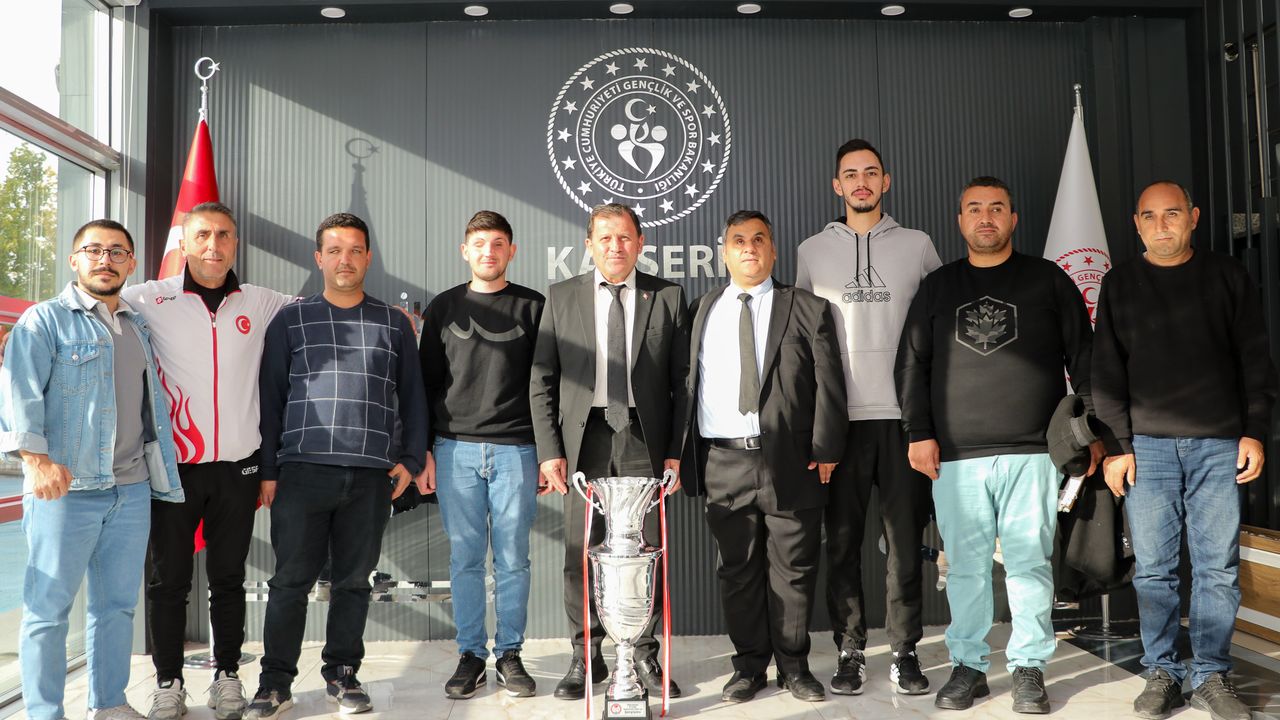 Kayseri Görme Engelliler Spor Kulübü, Sesi Görenler 1. Ligi’nde şampiyonluğunu ilan ettikten sonra, lig bitiminde kaldırdıkları şampiyonluk kupasıyla Gençlik ve Spor İl Müdürü Ali İhsan Kabakcı’yı makamında ziyaret etti.