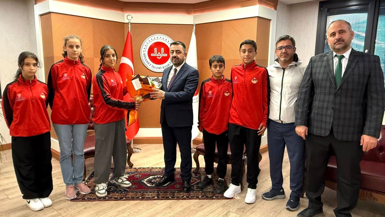 Ziyarette öğrenciler, ERVA Spor Okulu’na sağladığı destekler için İl Müftüsü Ayvaz’a teşekkür ederek çiçek takdiminde bulundu. Samimi bir atmosferde geçen görüşmede Ayvaz, genç sporcularla tek tek ilgilenip sohbet etti.