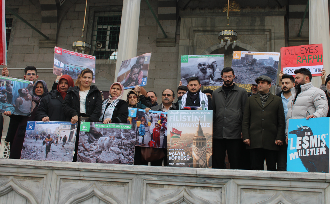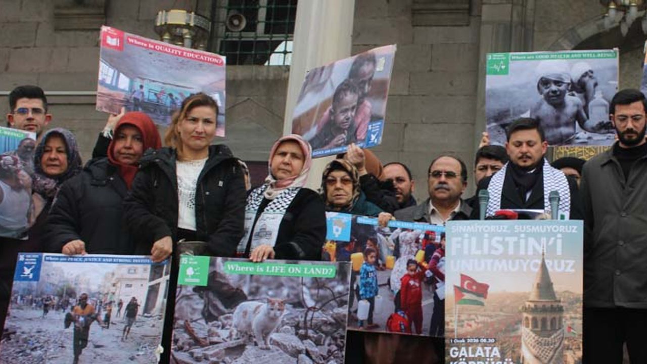 yıkım taşıyan yapılara ilişkin veriler paylaşılmaktadır. Yine aynı raporda, tıbbi tahliye bekleyen hastalara ilişkin kritik bilgi yer almakta; Temmuz 2024 - 28 Kasım 2025 arasında tahliye beklerken bin 92 hastanın hayatını kaybettiği ve Gazze’de 18 bin 500’den fazla hastanın hâlen tıbbi tahliyeye ihtiyaç duyduğu bildirilmektedir. Gıda güvenliği ve beslenme alanındaki raporlar ise 'geçici iyileşme' başlığının kolay bir rehavete dönüşmemesi gerektiğini açıkça ortaya koymaktadır. Bir toplumun ihtiyaç duyduğu 'insani yardım' kavramı bile süslenerek tartışmalı hâle getiren prosedürler var ise burada bir sorun vardır. Bu çağrımız; bir ülkeye, bir halka, bir kuruma karşı önyargı değil; insan hayatını merkeze alan evrensel bir tutarlılık talebi içermektedir. Milli İrade Platformu ve İnsanlık İttifakı çatısı altında 400’ü aşkın paydaş sivil toplum kuruluşuyla birlikte, kamu vicdanını diri tutmak ve insanlık onurunu savunmak amacıyla barışçıl şahitlik' çağrımızı yineliyoruz. Yeni yılın ilk gününde 1 Ocak’ta, saat 08.30’da Galata Köprüsü’nde sinmiyoruz, susmuyoruz, Filistin’i unutmuyoruz. Yüz binlerce vicdan sahibiyle birlikte tüm dünyayı uyandırıyoruz. Unutmuyoruz, normalleştirmiyoruz, insani olanı savunuyoruz" diye konuştu.