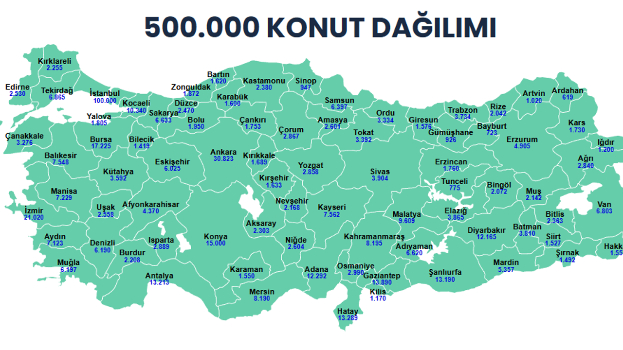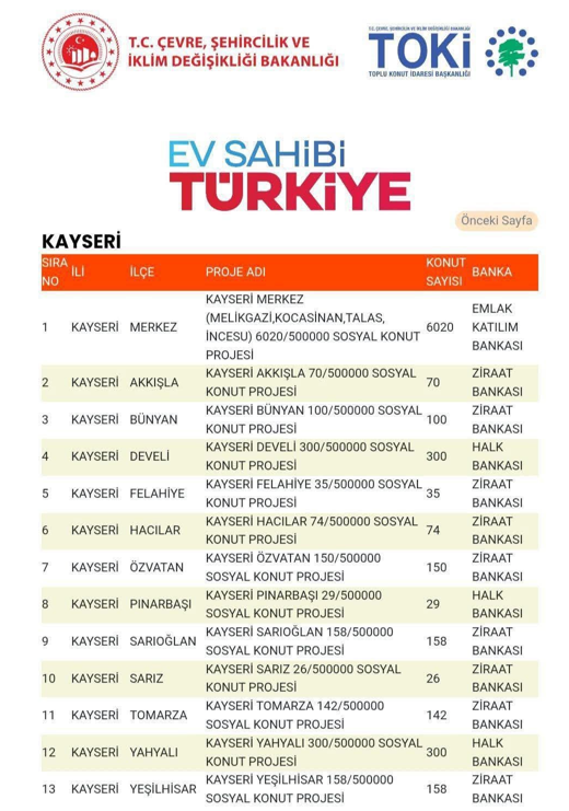 AK Parti Kayseri İl Başkanı Hüseyin Okandan; Kayseri'ye yapılacak olan 7 bin 562 sosyal konutun ilçelere göre kontenjanlarını açıkladı.