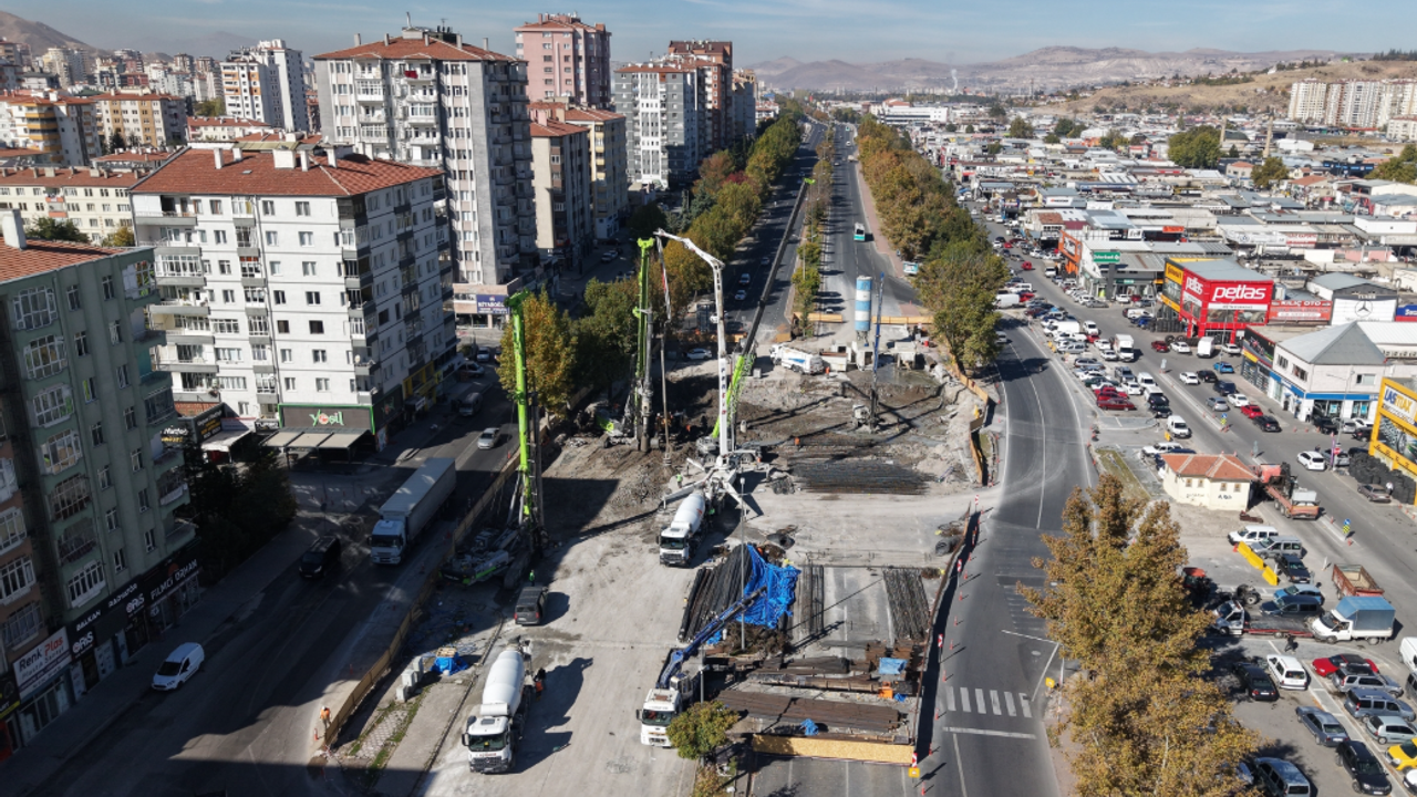 Söz konusu çalışmalar kapsamında ekipler, altyapı faaliyetlerinin yanı sıra katlı kavşağın temel çalışmalarını da sürdürüyor.