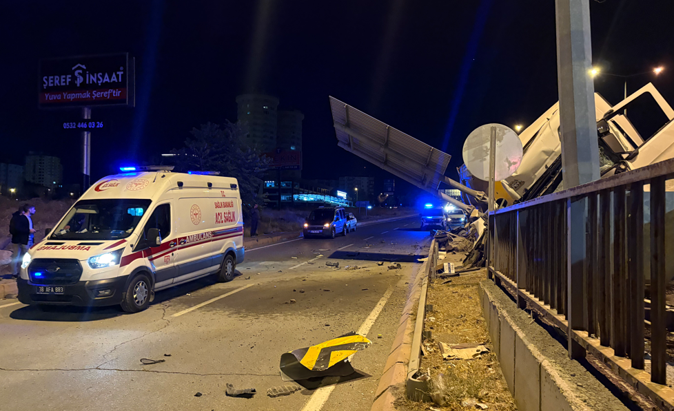 Kayseri’nin Melikgazi ilçesinde sürücüsünün direksiyon hakimiyetini kaybettiği tır bariyerlere girdi, sürücü yaralandı.