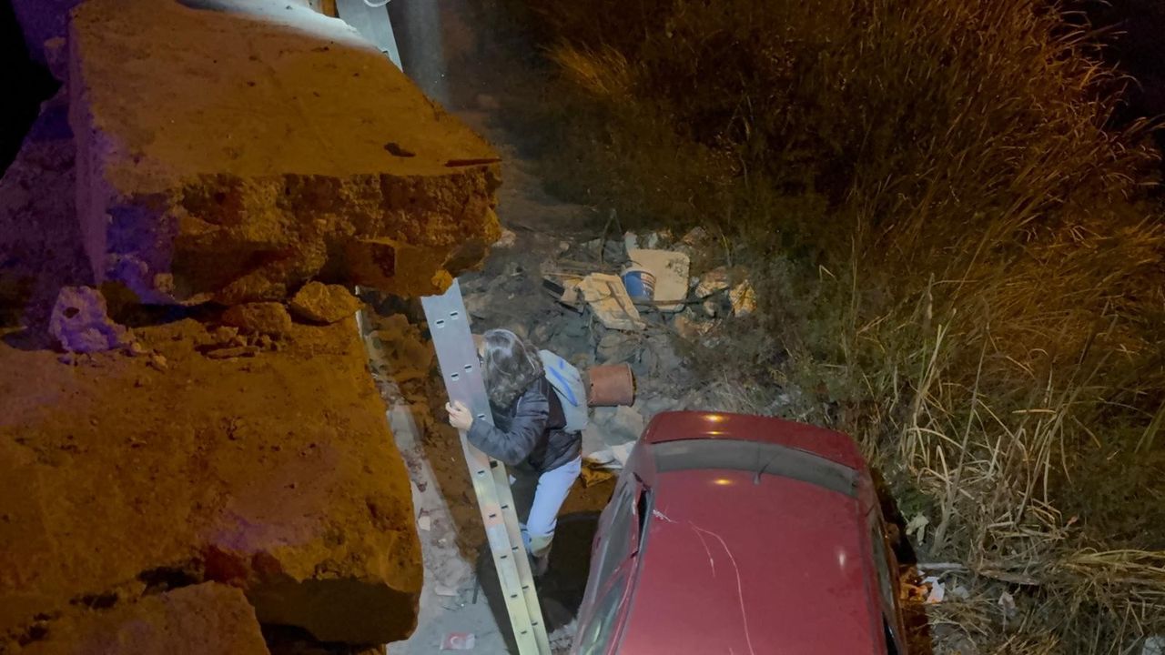 Kayseri'nin Kocasinan ilçesinde 5 metrelik kanala uçan otomobilin sürücüsü, kanaldan merdiveni tırmanarak çıktı.