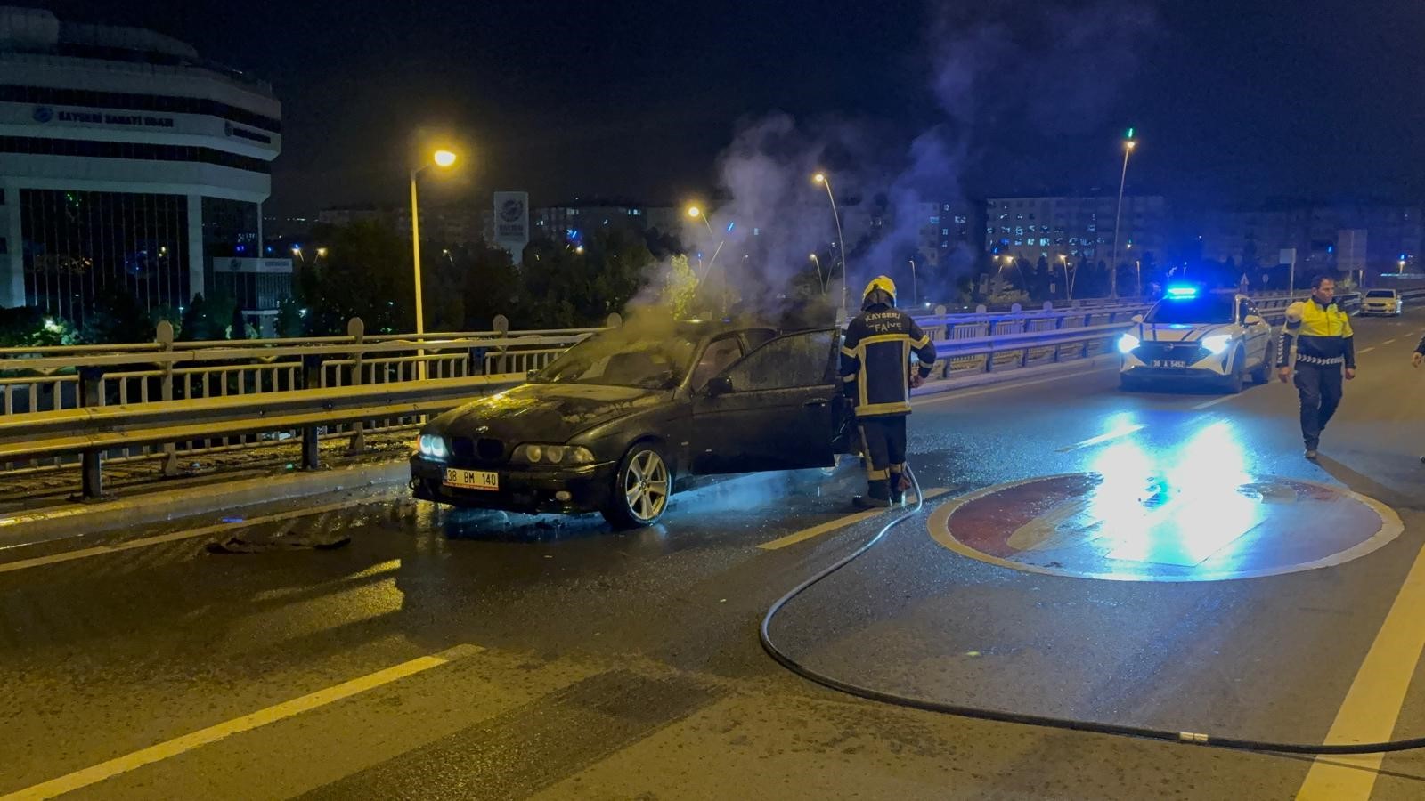 Edinilen bilgiye göre, ilçeye bağlı Mevlana Mahallesi Mustafa Kemal Paşa Bulvarı üzerinde bulunan üst geçitte seyreden E.Ö. yönetimindeki 38 BM 140 plakalı otomobilin motor kısmından dumanlar çıkmaya başladı. E.Ö. otomobili durdururken, dumanlar yerini alevlere bıraktı. İhbar üzerine bölgeye polis ve sağlık ekipleri sevk edildi. Polis ekipleri yolda güvenlik önlemi alırken, itfaiye ekipleri de otomobilde çıkan yangına müdahale etti. Ekipler tarafından yangın kısa sürede söndürülerek, soğutma çalışması yapıldı. Otomobil çekiciyle kaldırıldı. Olayla ilgili soruşturma başlatıldı.