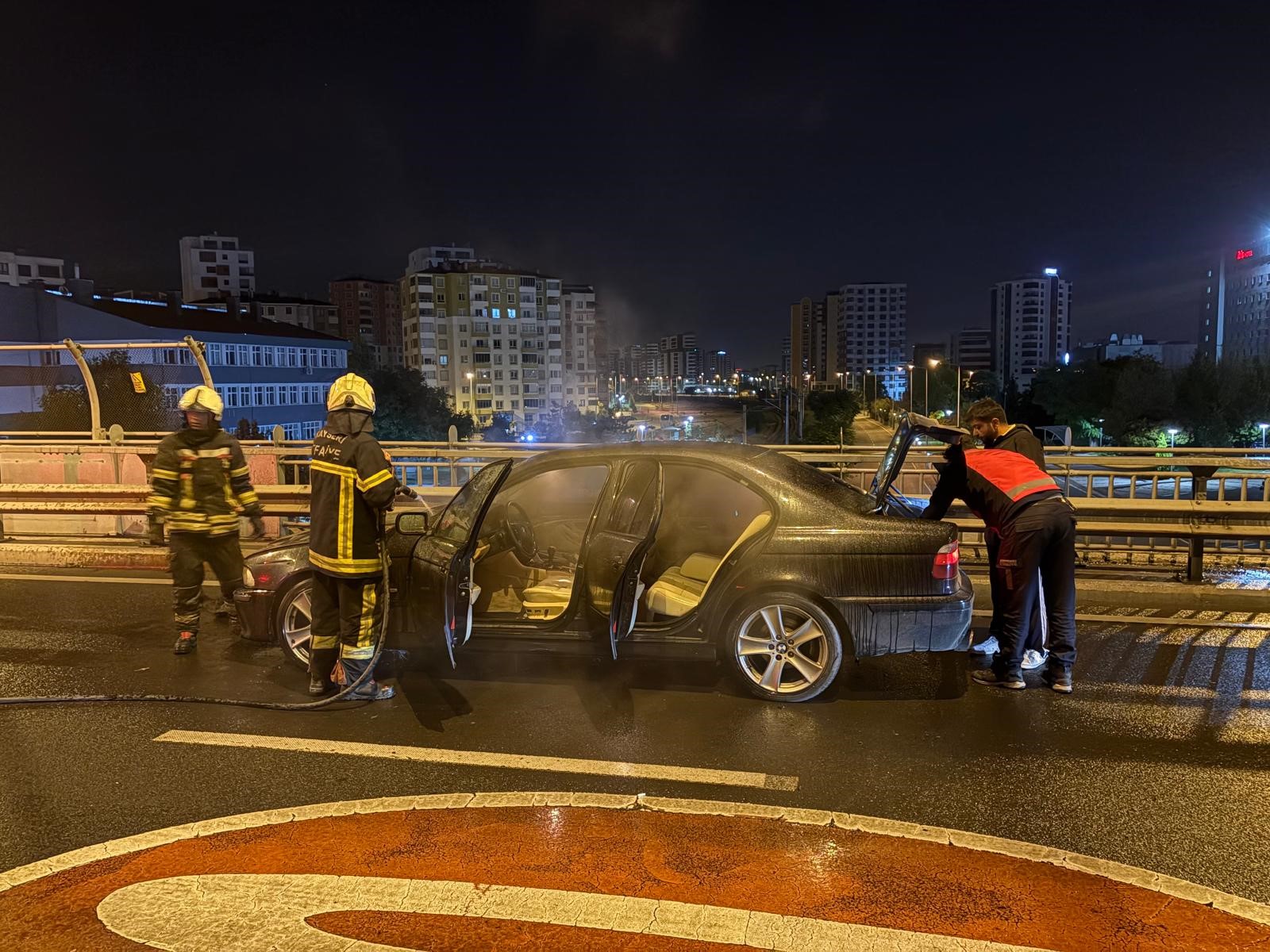 Kayseri'nin Kocasinan ilçesinde üst geçitte bir otomobilin motor kısmında çıkan yangın itfaiye ekipleri tarafından söndürüldü.