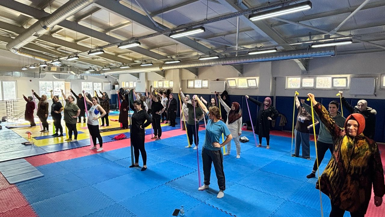Kayseri Talas İlçe Müdürlüğü Spor Salonu içerisinde yer alan antrenman salonunda, bayanlar fitness antrenmanları yoğun katılım ile devam ediyor. Düzenli olarak gerçekleştirilen fitness programları, spor ve sağlıklı yaşam bilincini artırmayı hedefliyor.