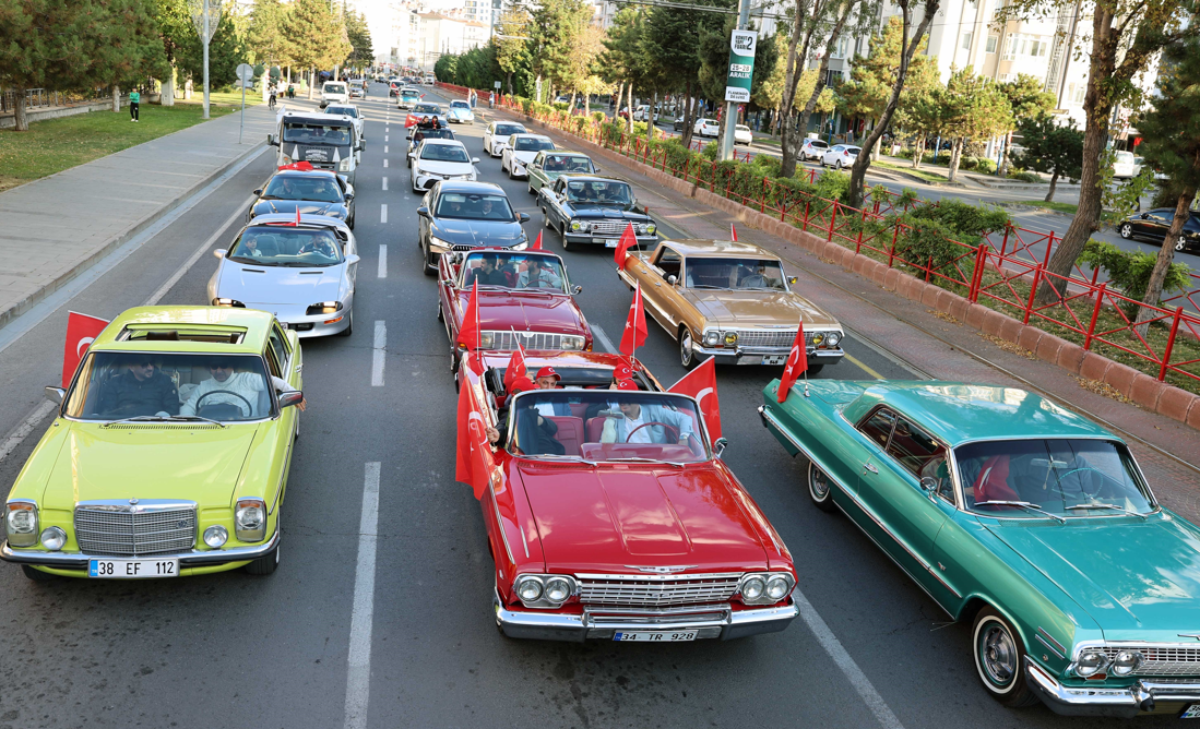 Talas'ta klasik araçlarla Cumhuriyet coşkusu