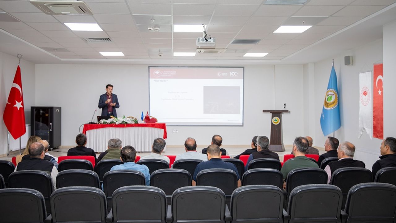 Bölge Müdürlüğü toplantı salonunda düzenlenen etkinlikte, Tarım ve Orman İl Müdürlüğü proje ve ARGE biriminden Mustafa Tokdemir ve Meral Akalın Koca, AB projeleri hakkında personeli bilgilendirdi.