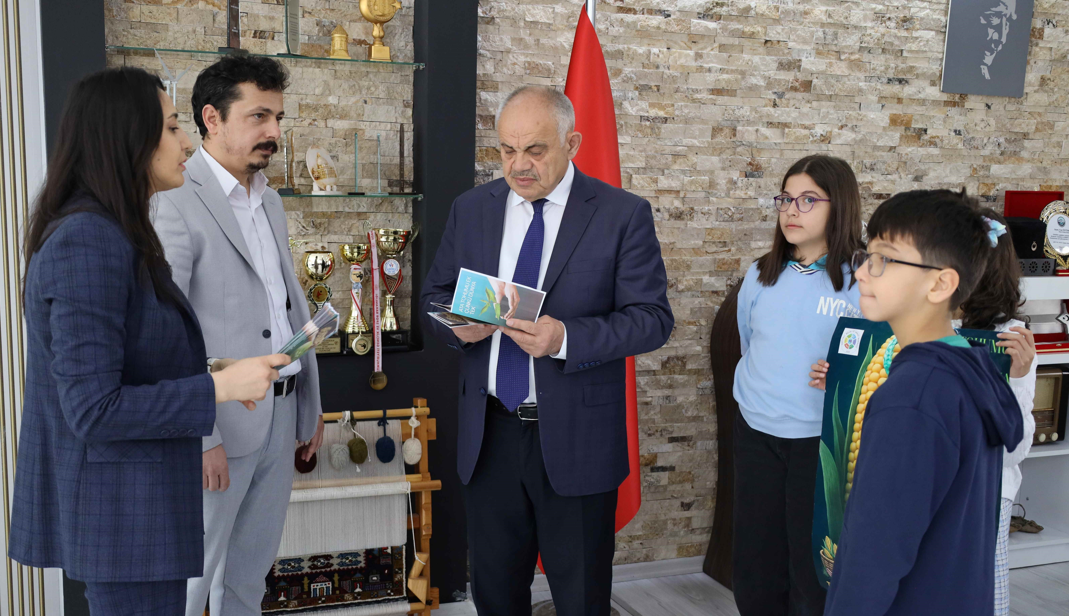 Kayseri’nin Yahyalı ilçesinde, ata tohumlarının korunması ve gelecek nesillere aktarılması amacıyla proje yürüten Yahyalı Bilim ve Sanat Merkezi Okul Müdürü Suat Aydın, öğretmen Esra İnan ve öğrenciler, Belediye Başkanı Esat Öztürk’ü ziyaret etti.